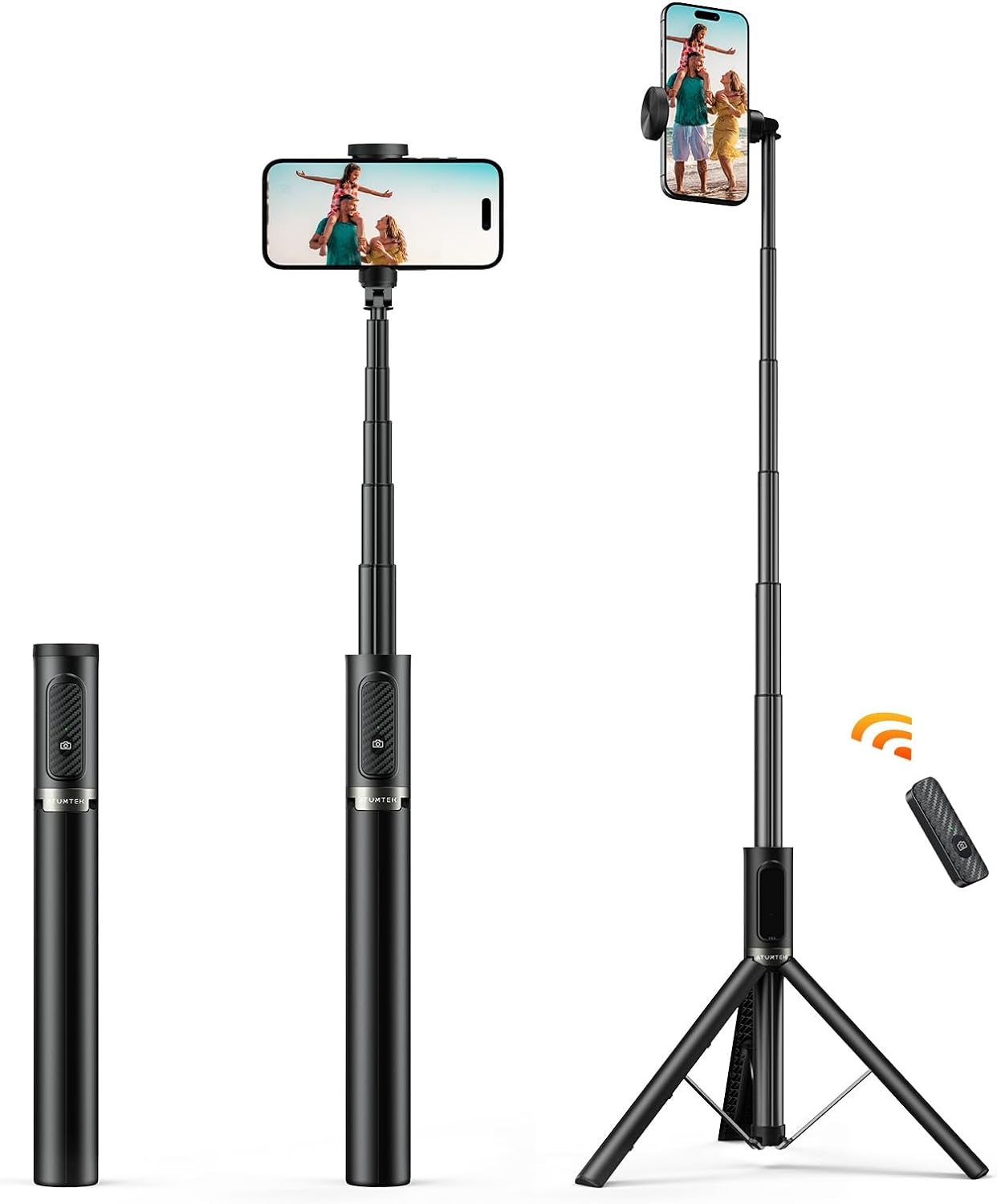 ATUMTEK 62″ Selfie Stick Tripod, Extendable Aluminum Tripod with Rechargeable Bluetooth Remote, Compatible with iPhone and Android Smartphones, Perfect for Travel, Vlog, Video and Photo, Black
