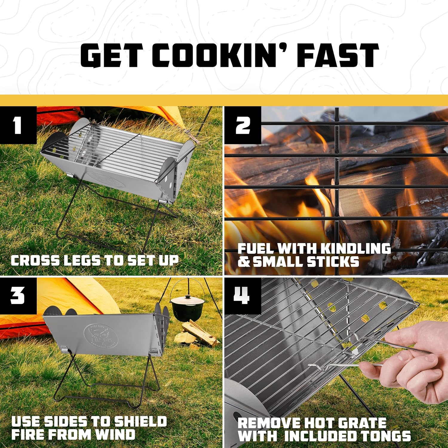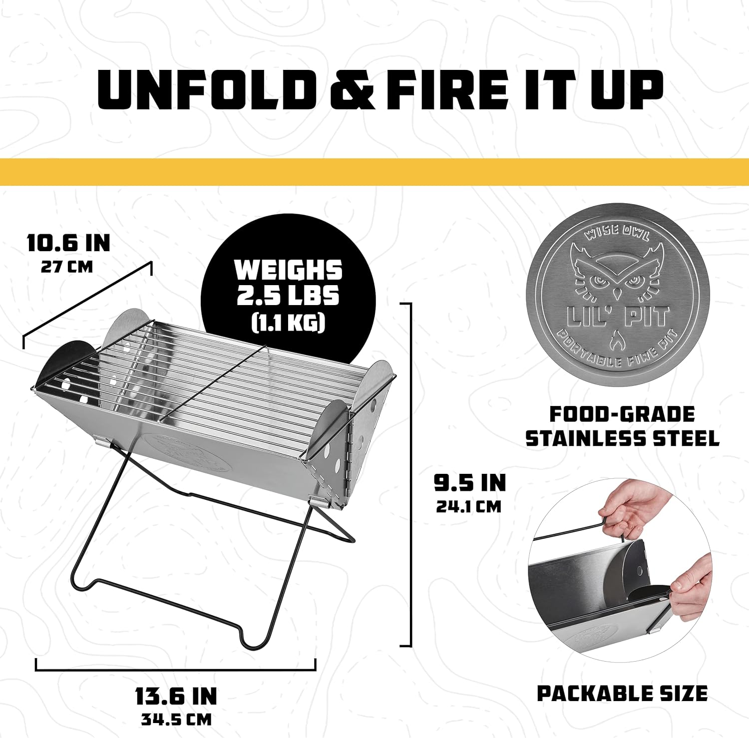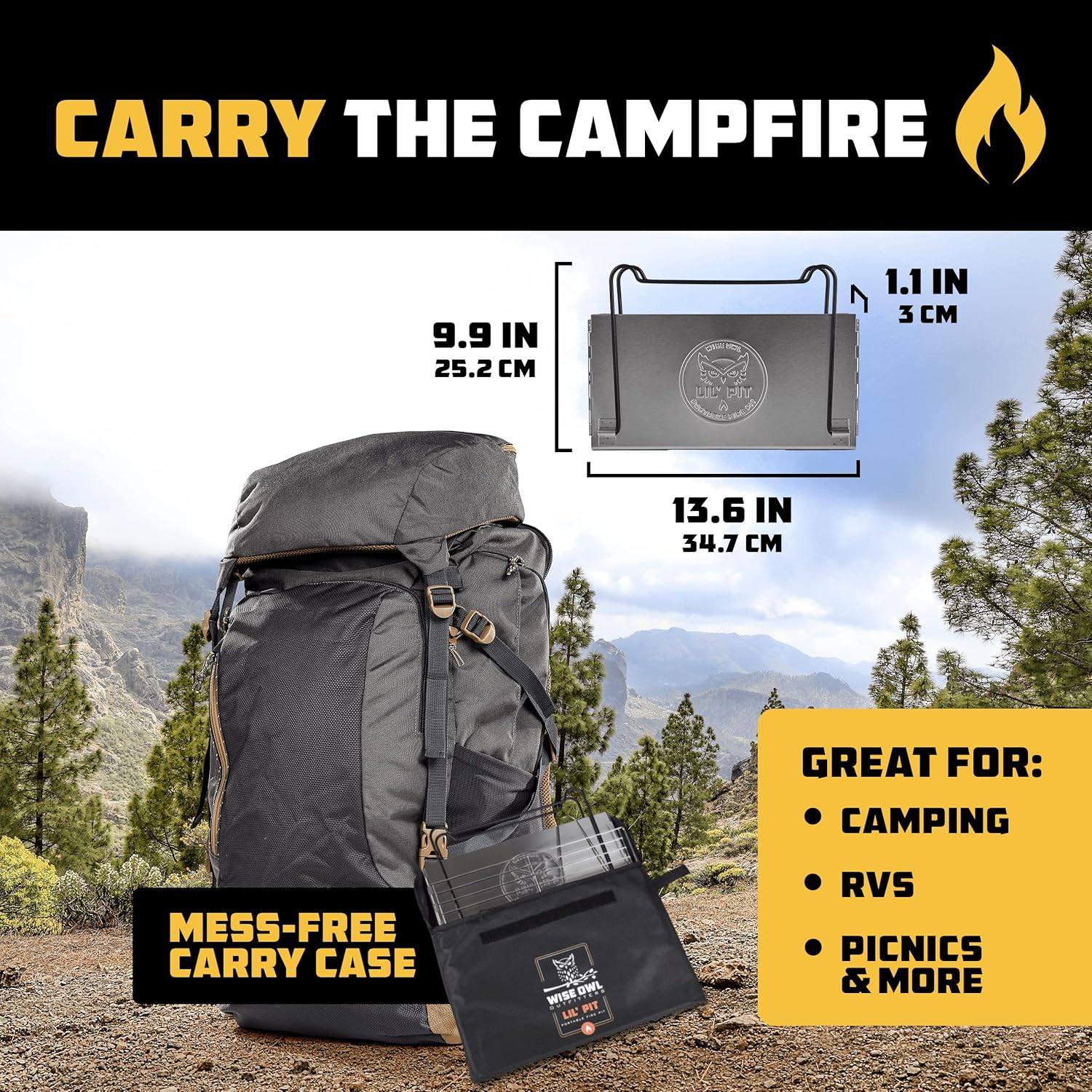 The included carrying case makes it easy to pack and store the fire pit when not in use, while the sturdy construction ensures long-lasting durability. Whether you’re grilling up burgers, roasting marshmallows, or just enjoying the warmth of a crackling fire, the Wise Owl Outfitters Portable Camping Grill is the perfect addition to your outdoor adventures. Order yours today and elevate your outdoor cooking experience!